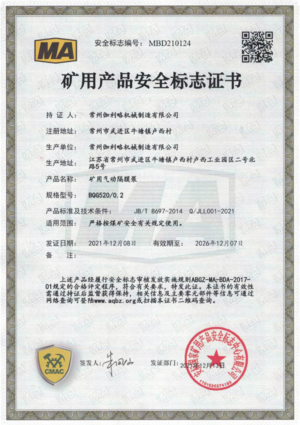 • 礦用安全標(biāo)志證書-BQG520/0.2